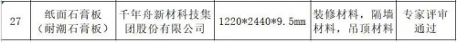 近日,千年舟集团难燃胶合板、木地板、轻钢龙骨、纸面石膏板等产品通过机构层层严格认证检测,成功入选《佛山市绿色建材目录》。